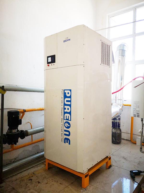3133拉斯维加斯全预混低氮纯铜燃气锅炉应用于洗浴中心。 超小占地面积,节省空间。